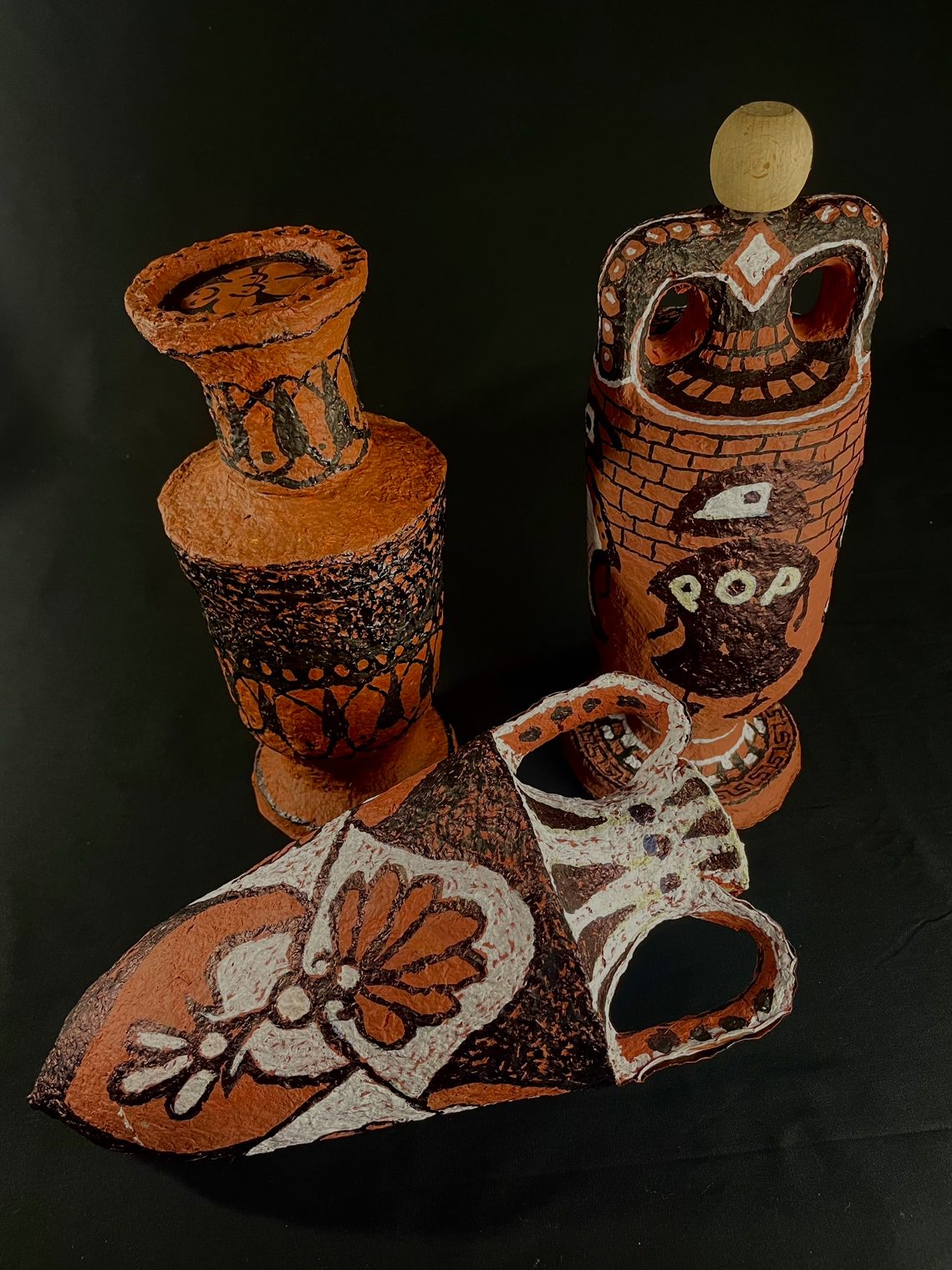 Back to School Collection, born from the first workshop inspired by Greek artistry. This collection represents a turning point—transforming the dream of a ceramic studio into a sustainable reality. Crafted from recycled materials, glue, and creativity, each piece captures the timeless beauty of Greek design while embodying the spirit of renewal and resourcefulness.
